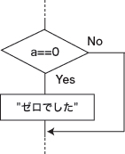たとえば変数 a の値がゼロだったときに一行メッセージを表示する場合は、以下のように if 文を使います。