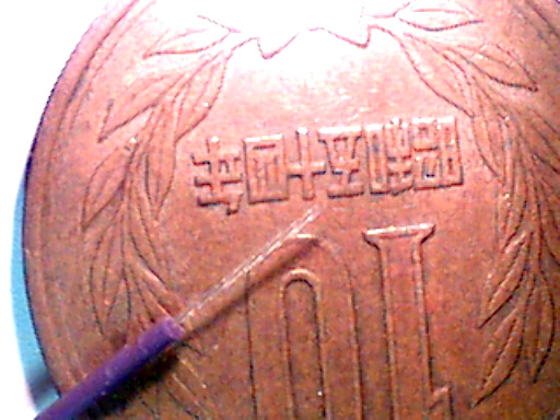 周辺に白く見えているのは被覆の残り。 ファイバ(ガラス)の外径 (125μ) は先端の幅、か?